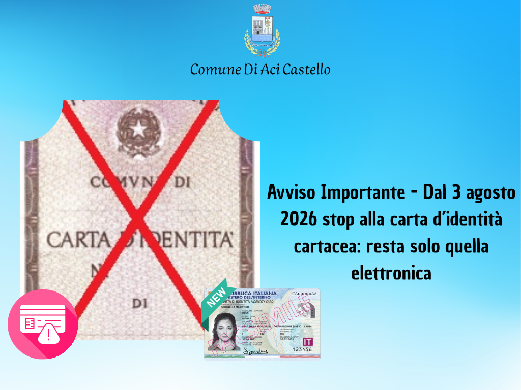 Avviso Importante - Dal 3 agosto 2026 stop alla carta d’identità cartacea: resta solo quella elettronica