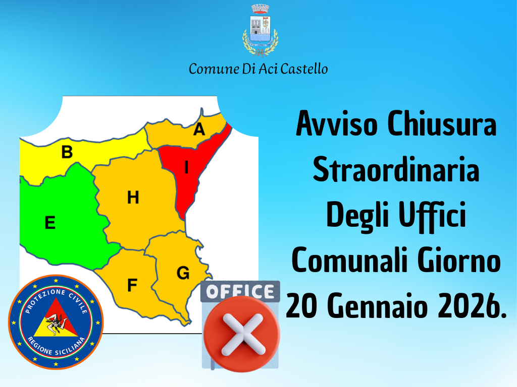 Si Avvisa La Cittadinanza Che Nella Giornata Di Martedì 20 Gennaio 2026 Gli Uffici Comunali Resteranno Chiusi Per L'Allerta Rossa Per Rischio Meteo- Idrogeologico E Idraulico Diramata Con Avviso Regionale Di Protezione Civile N. 26018 Del 18.01.2026.